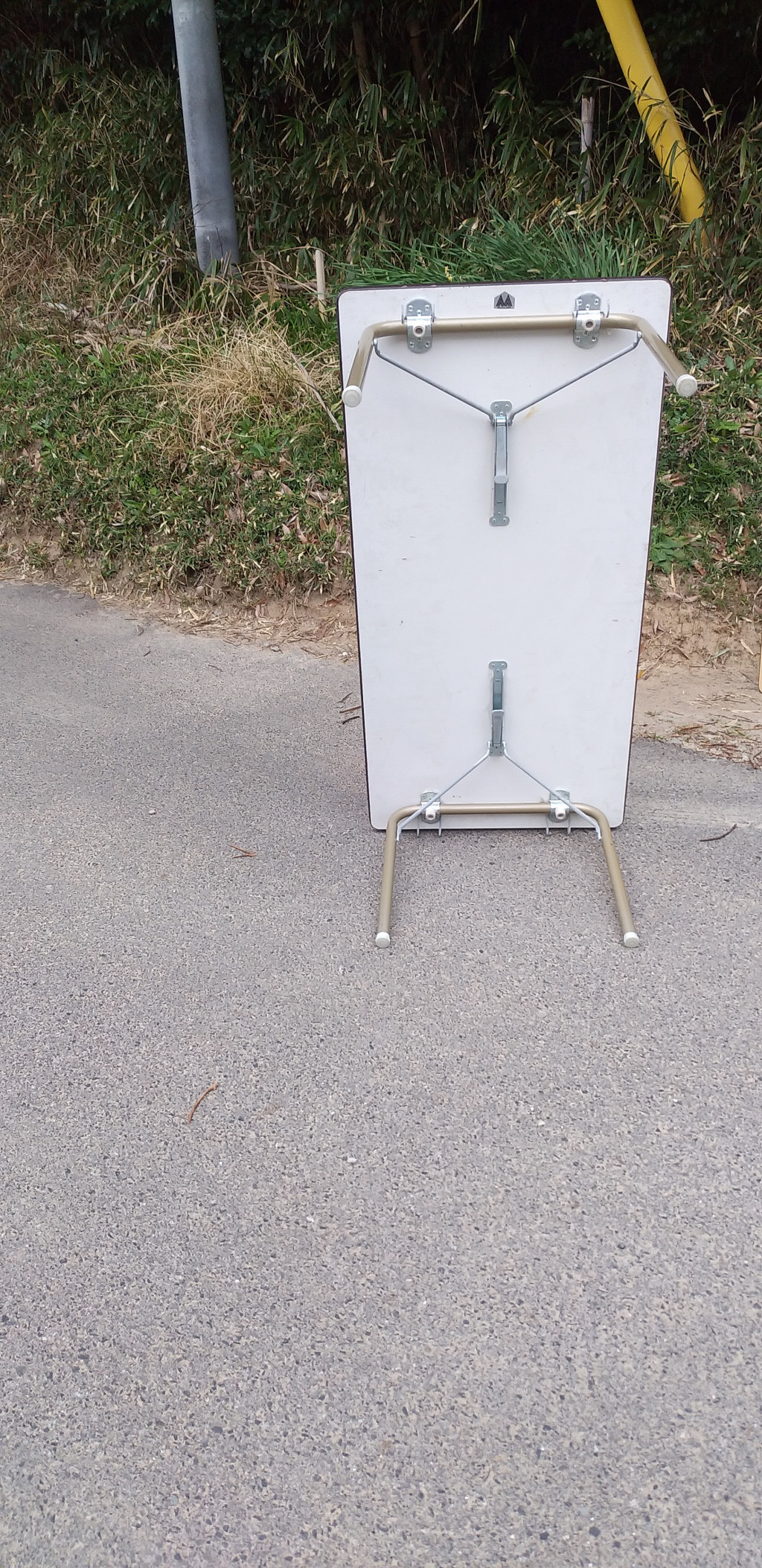 中古の幼稚園用テーブルです。テーブルには傷がたくさんあり、錆びも少しあります。