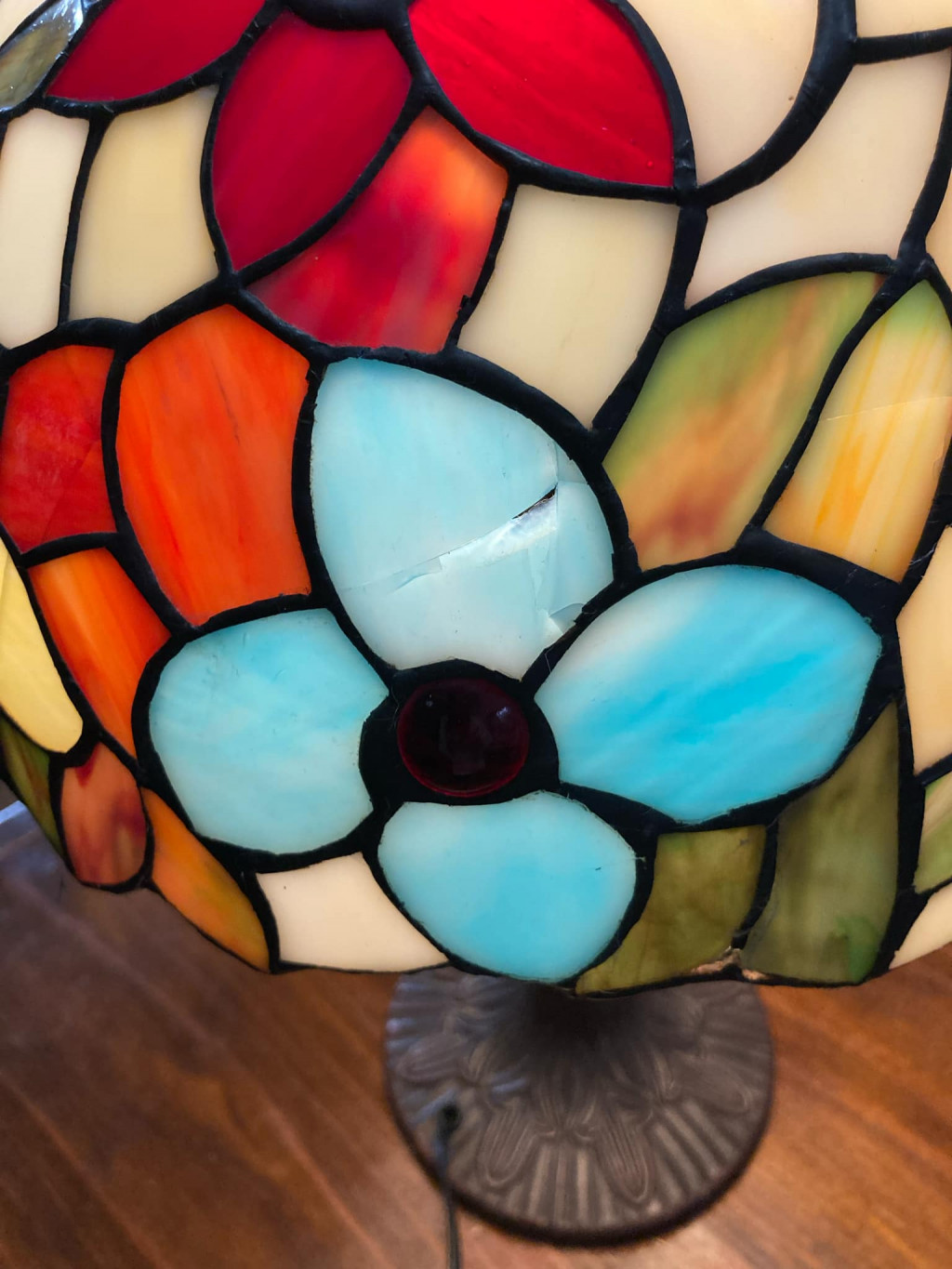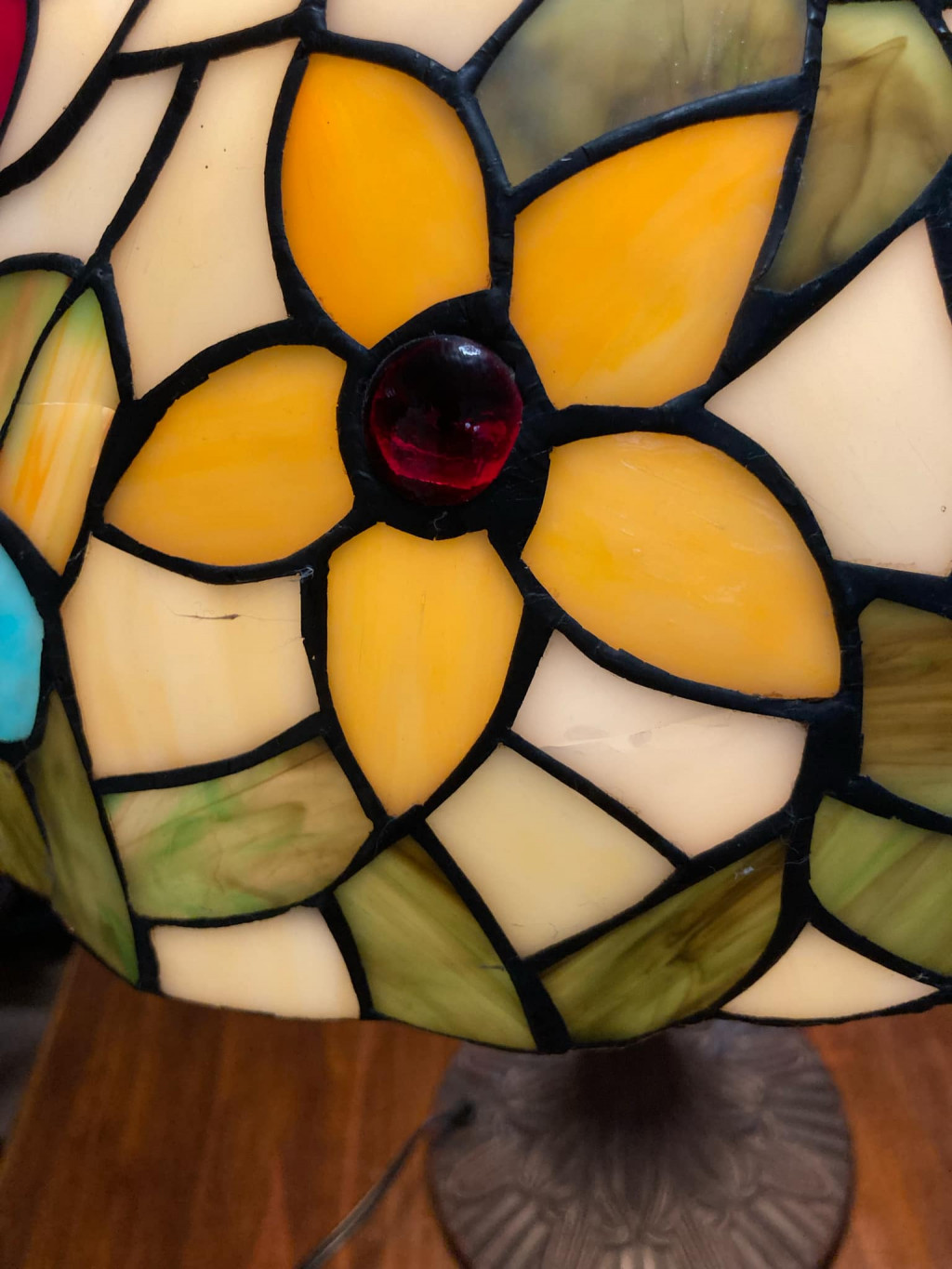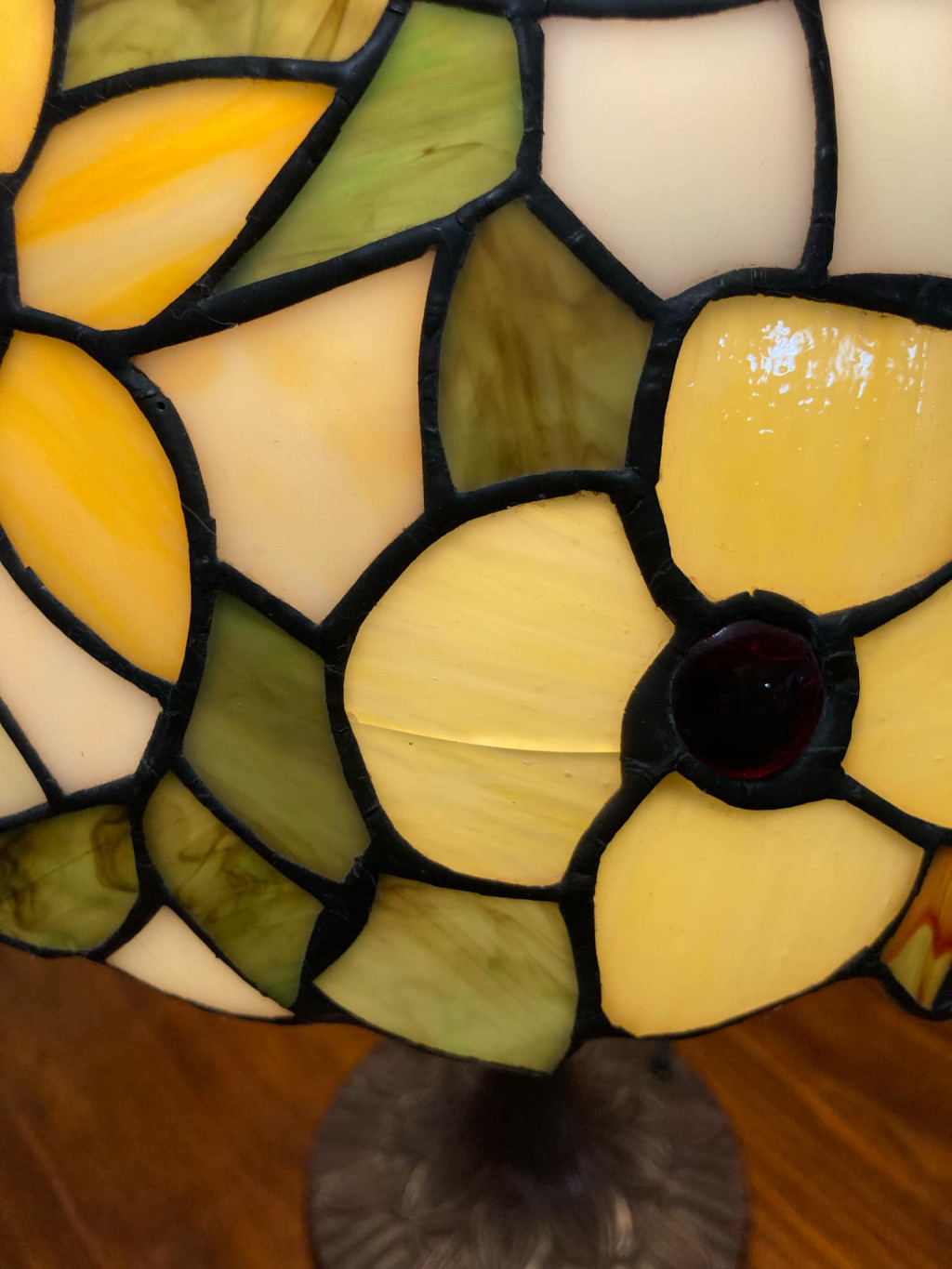 ステンドグラスの枠の一部が割れています。