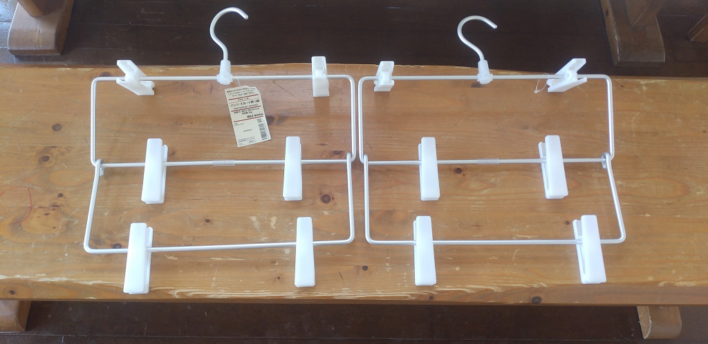 耐食性、耐摩耗性を高めるアルマイト加工のみのアルミを使用しました。生産工程を可能な限り省いたシンプルなパンツ・スカート用のピンチハンガーです。3着掛けられ省スペースですっきりと収納できます。