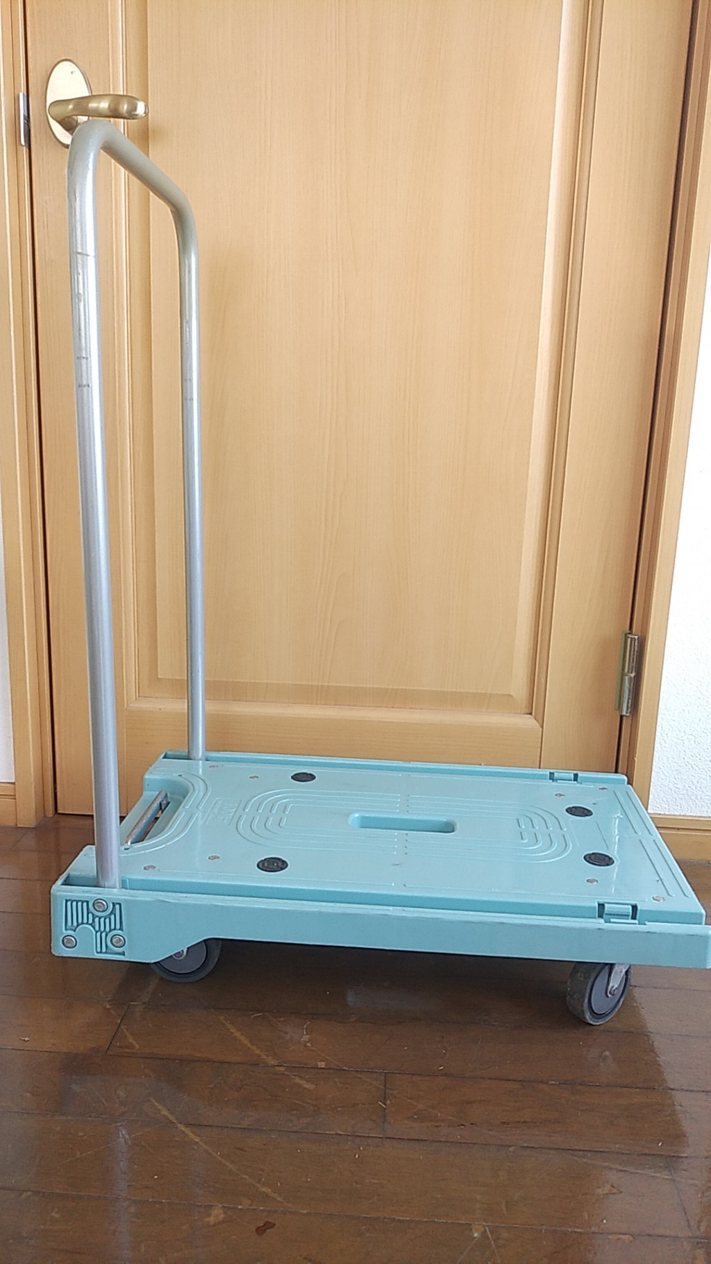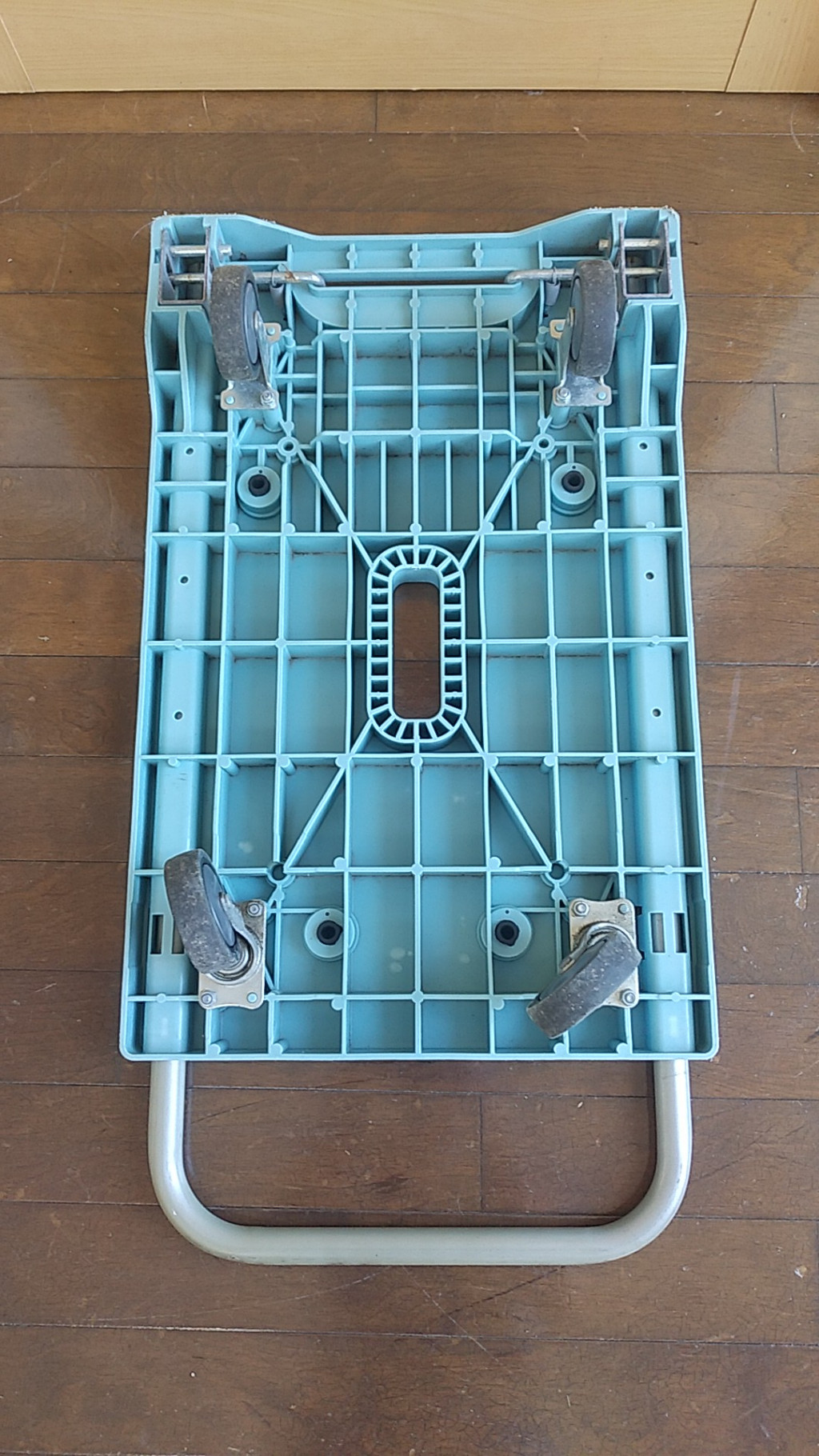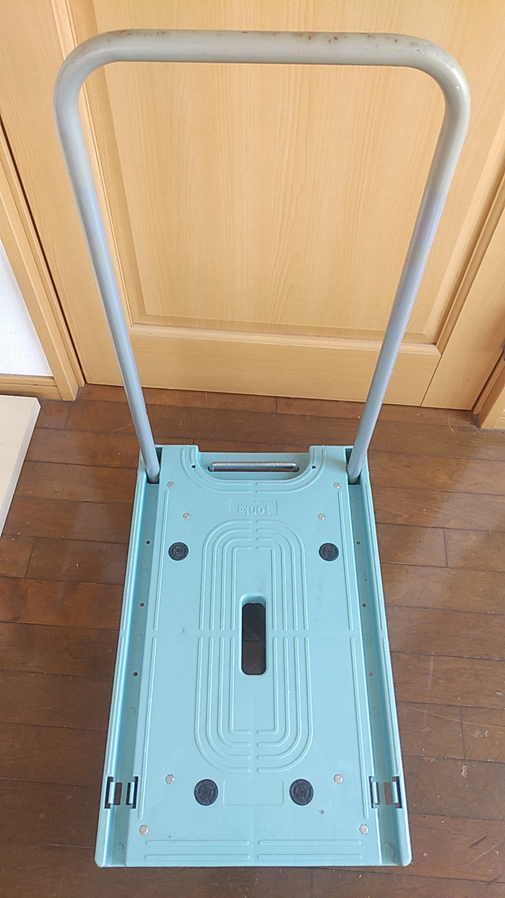 隙間収納可能なコンパクトサイズで車載用としても最適。専用持ち手穴付で持ち運びが楽。実用性重視の本格的スペック。走行抵抗が軽減し、かる~く押せる。積載面は滑り止め付き(4箇所)で運搬中の荷物の安定に役立ちます。平台車としても利用可能です。軽量樹脂製台車。持ち運びが楽でかる~く押せる、買い物荷物の運搬やゴミ出し等に、あれば便利なコンパクト樹脂製台車です。