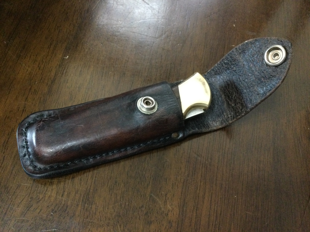 約30年前に購入し殆ど使用することもなく保管していました。ナイフ、ケースに細かなキズはあるものの美品だと思います。