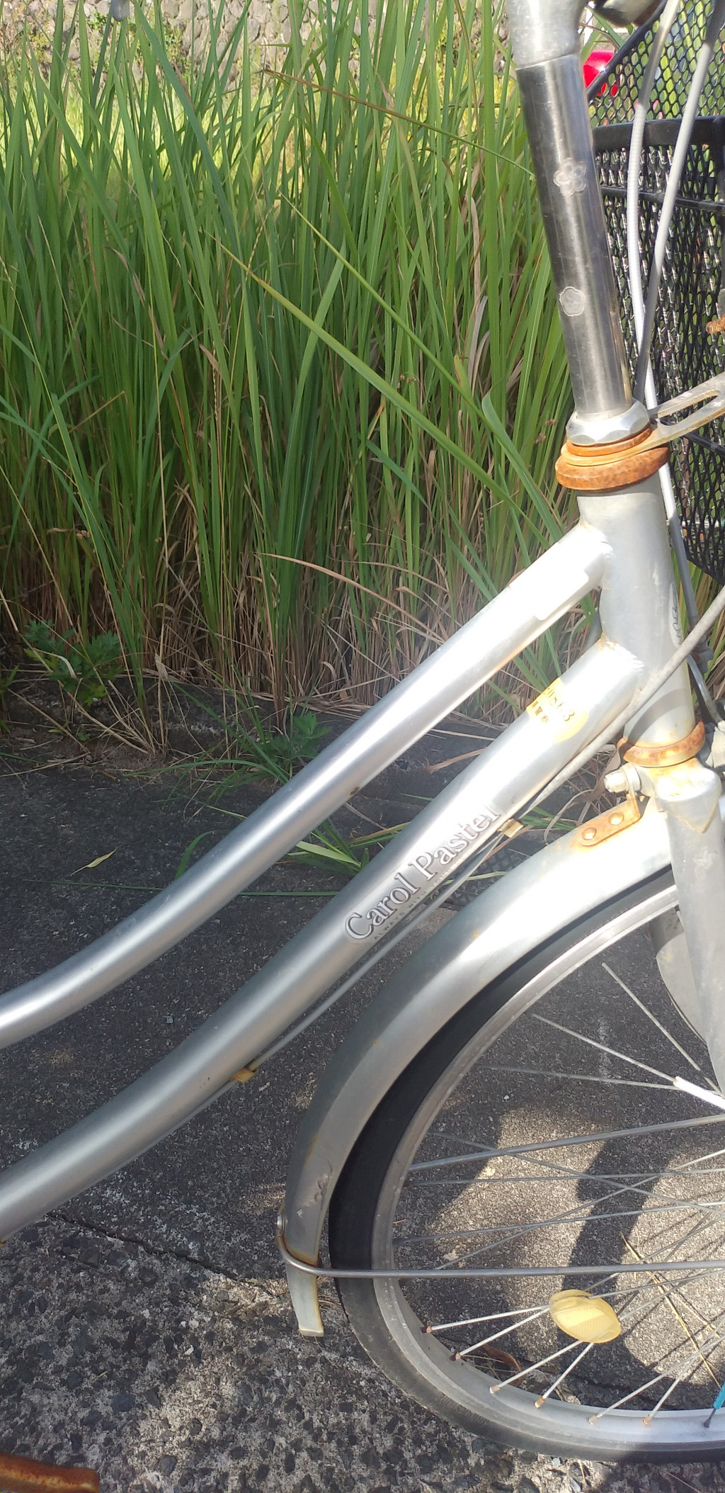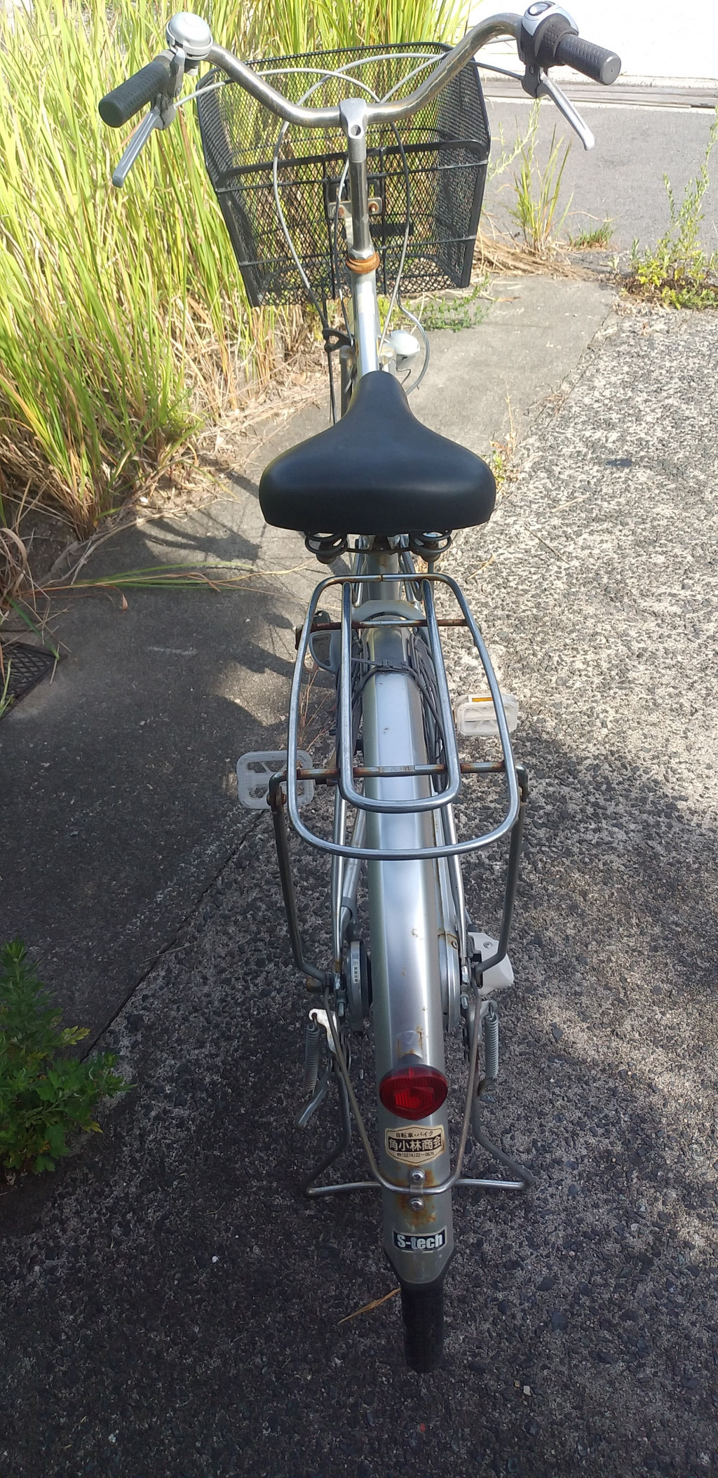 この自転車はあまり使用されていませんが、家の軒下に置いてあったため、錆びや色褪せがあります。